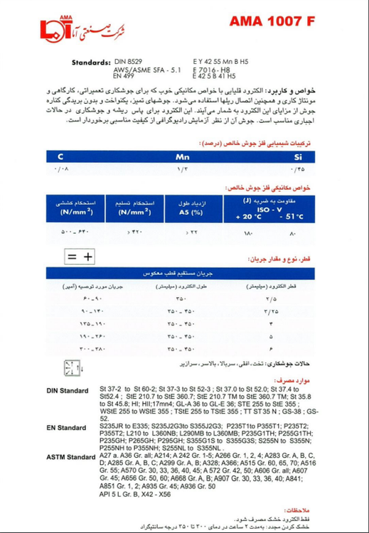 الکترود 1177F محصول شرکت آما، یک الکترود قلیایی با استاندارد E 7018–1–H4 است که برای جوشکاری فولادهای کمکربن تا 0.6 درصد مناسب میباشد.