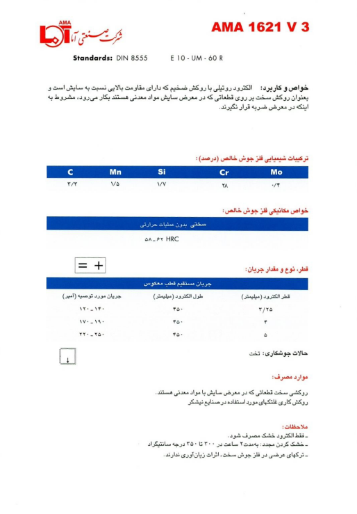 🔹 خرید الکترود جوشکاری آما 1621V3