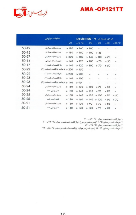 | 50-21 | تنش زدایی شده | >160 >140 >120 >90 >70 - | |