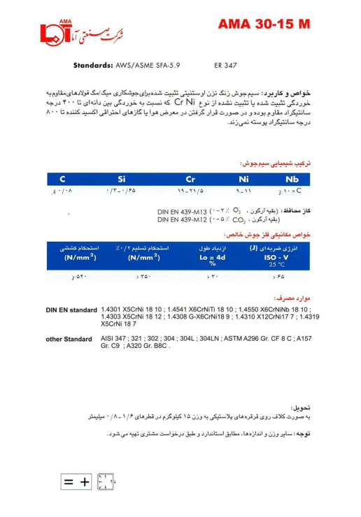 سیم جوش های میگ/مگ برای جوشکاری با گاز محافظ AMA 30-15M