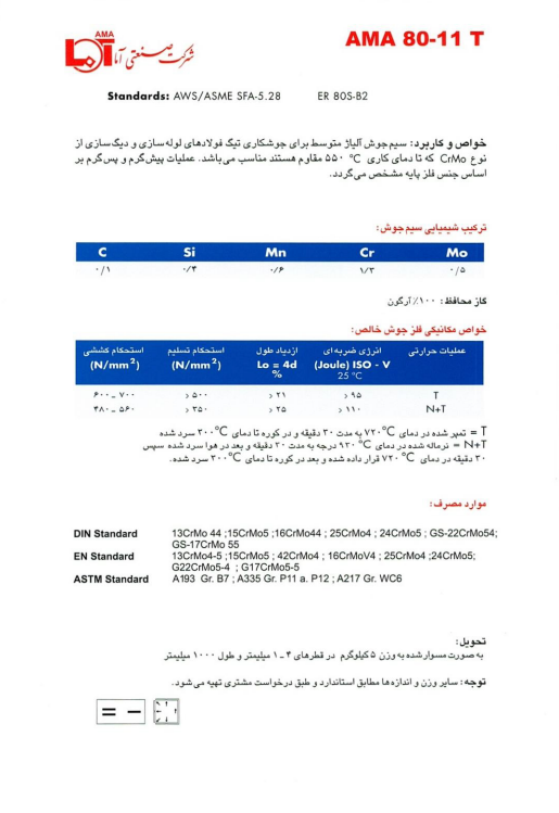 مشخصات فنی سیم جوش 11-80