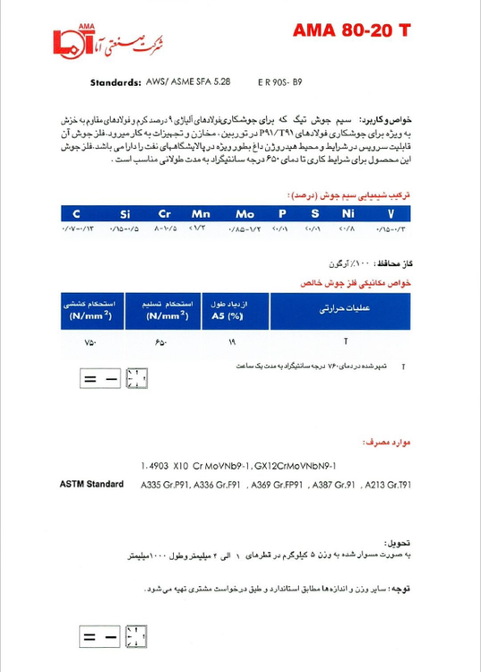 سیمجوشهای تیگ کم آلیاژ AMA 80-20T