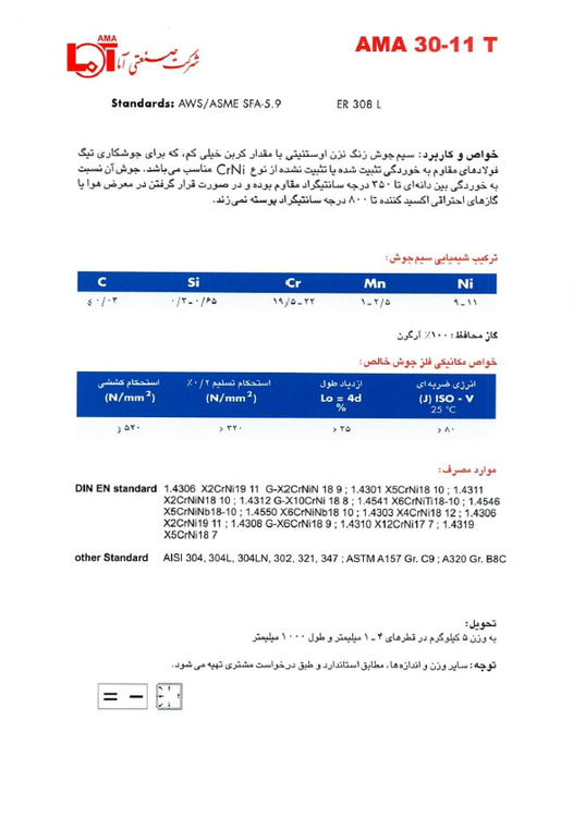 سیمجوشهای تیگ آلیاژی برای جوشکاری استنلس استیل AMA 30-11T