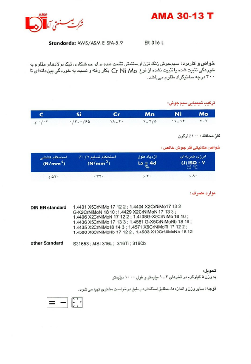 مشخصات فنی سیم جوش 30-13T