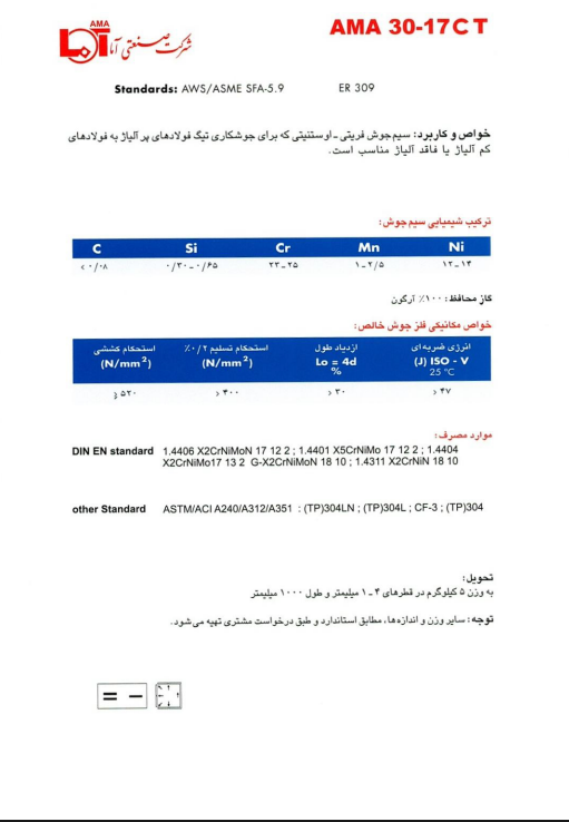 سیمجوشهای تیگ آلیاژی برای جوشکاری استنلس استیل AMA 30-17CT
