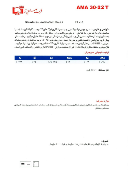 سیمجوشهای تیگ آلیاژی برای جوشکاری استنلس استیل AMA 30-22T