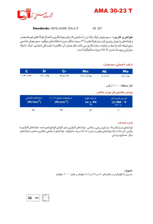 سیمجوشهای تیگ آلیاژی برای جوشکاری استنلس استیل AMA 30-23T