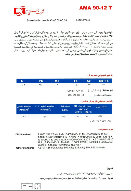 ✅ ترکیب سیم جوش نیکل، خواص مکانیکی T 90-12، سیم جوش دمای بالا