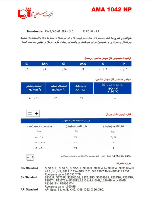 اگر به دنبال الکترودی مقاوم به دمای بالا و فشار زیاد هستید که برای جوشکاری سریع و دقیق لولهها در موقعیت سرازیر مناسب باشد، الکترود 1042NP آما یکی از بهترین گزینهها در صنعت جوشکاری محسوب میشود.