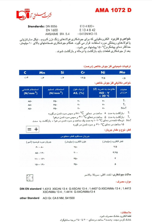 الکترود قلیایی برای جوشکاری فولادهای زنگ نزن کروم AMA 1072D