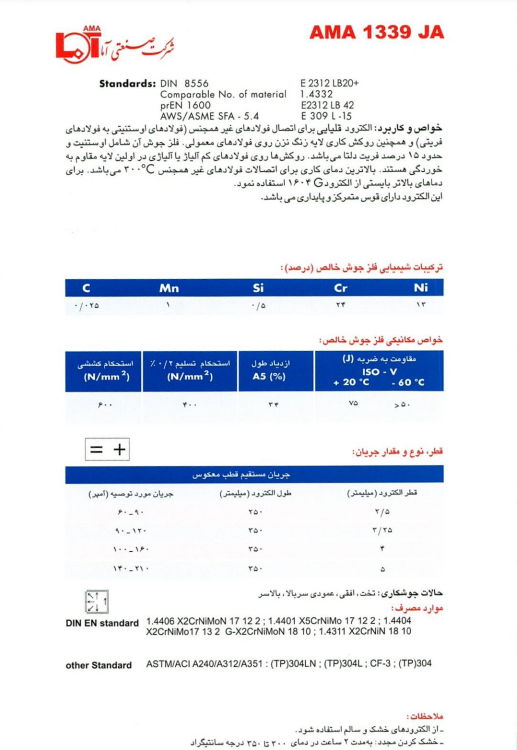 الکترود های مخصوص جوشکاری فولادهای زنگ نزن و مقاوم به حرارت AMA 1339JA