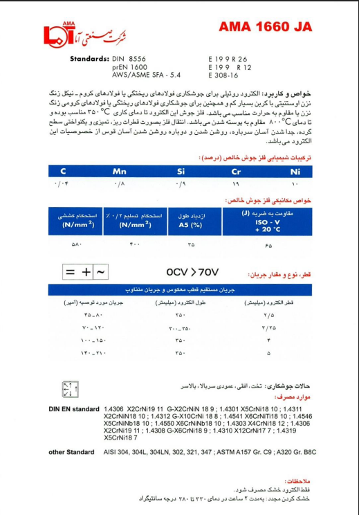 با رعایت این نکات و مشخصات، الکترود AMA 1660JA میتواند جوشهایی با کیفیت بالا و مقاومت مناسب در برابر خوردگی ارائه دهد.