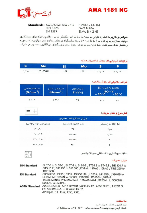 الکترود جوشکاری برای فولاد های مقاوم به خزش AMA 1181NC
