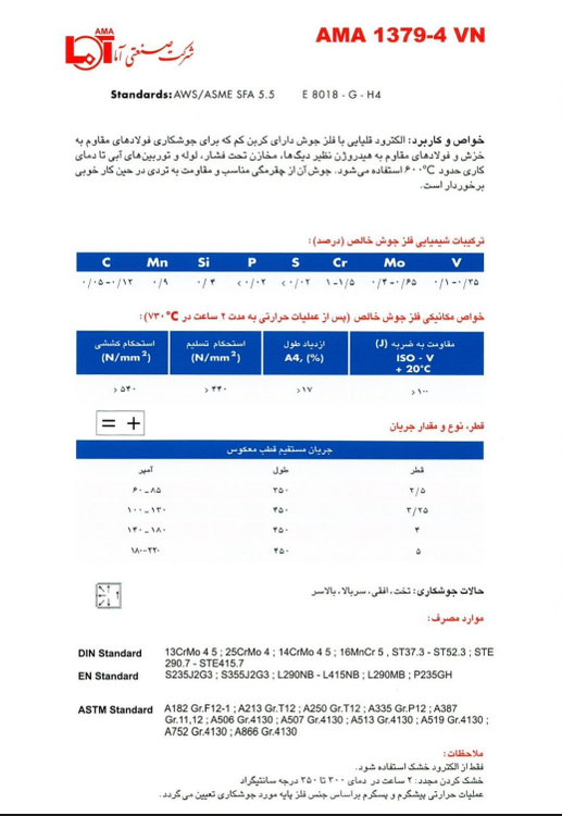 الکترود جوشکاری برای فولاد های مقاوم به خزش AMA 1379-4VN