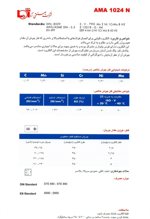 الکترودهای جوشکاری برای فولادهای ساختمانی دانه ریز 1024N